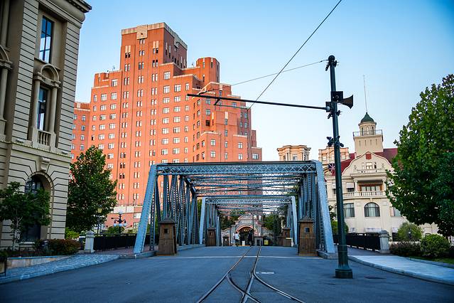 梦外滩景区位于东阳市横店镇都督北街233号,屏湖路南面,都督路西侧,依傍着南江。景区以20世纪30年代至40年代的老上海为主要原型,传神再现了当时的城市风貌,恢复老上海十里洋场的旧时风情,还原和平饭店、汇丰银行、海关大楼、外白渡桥、百老汇大夏、永安百货、上海大世界、天蟾戏院等老上海经典建筑,展示老上海独特的融万国建筑于一处的海派风格,是集电影主题乐园、影视拍摄服务、旅游休闲度假酒店、综合服务为一体的横店品牌特色文化主题景区。