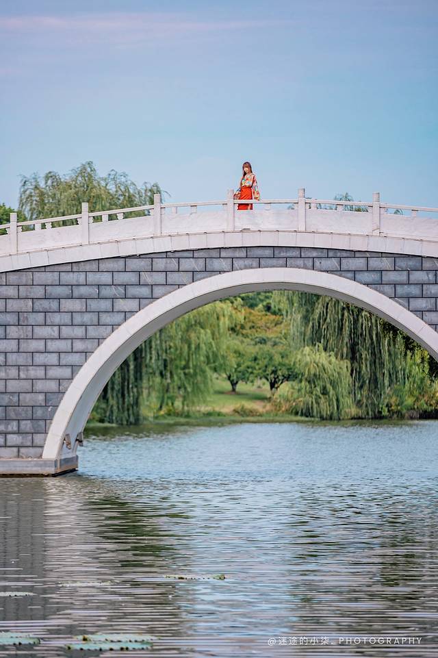 如果说马洲公园和牧城公园滂沱大气,那丽园就是精巧别致。平静的湖面,点缀几只乌篷船,竹林掩映下,若隐若现的仿古建筑,青色荷塘边起伏的白墙灰瓦,把江南园林的精巧布局展现的淋漓尽致。