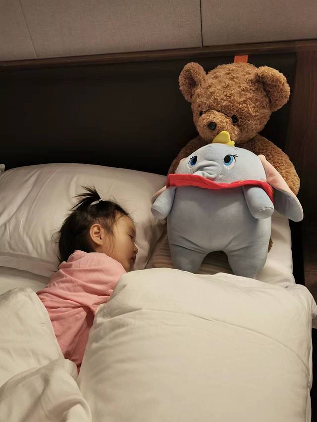 带宝宝,每天都是自然醒,昨天睡觉前宝宝又哭了好一会儿,因为没有带她的大象,我和爸爸找了好一会儿也没找到哪里能买到,毕竟晚上9点多了