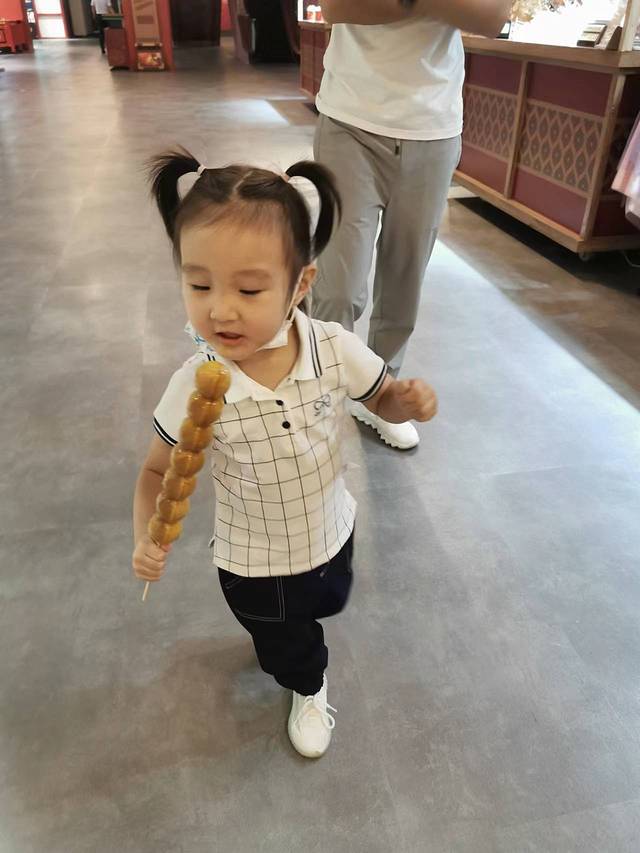 她说,妈妈我要吃冰淇淋,我说你自己走乖乖的就有冰淇淋,她说,妈妈你给我买了冰淇淋我就自己边走边吃了,好吧,我买了
