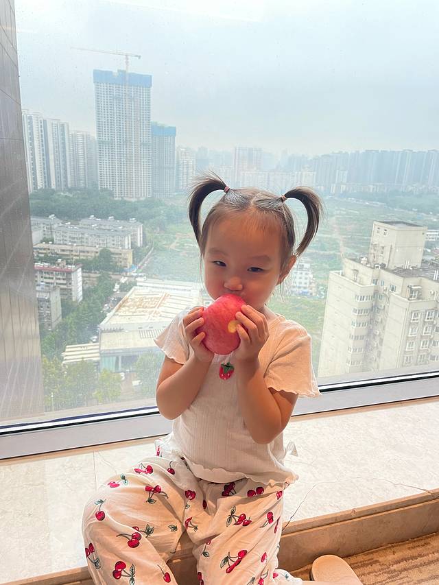 早餐之后回房间洗漱化妆收拾东西,小家伙又啃上了大苹果