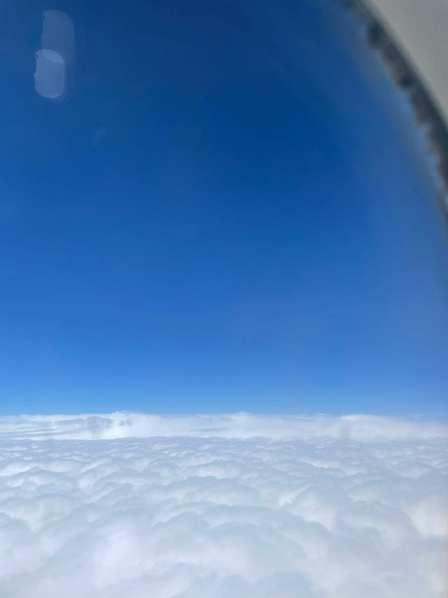 终于再次起飞啦,宝宝是真的困了,在起飞的过程中自己坐着睡着了。