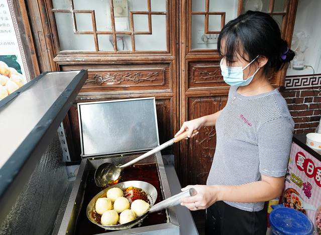 海苔饼:整条街与蛋清羊尾相出名的另外一个特色小吃便是海苔饼,古街上的“海苔饼”是最具诱惑力的,价格不贵,层次分明的饼皮,包裹着香甜浓醇的海苔馅料,口味丰富美味,几乎每天这道小吃的摊位都排满了长队。最好吃的海苔饼一定是刚出炉还冒着热气的样子,金黄的饼皮上撒着一把白芝麻,饼皮酥到掉渣,微咸微甜,酥酥脆脆。