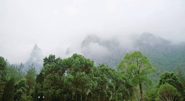 清晨,推窗可见山峰云雾缭绕,犹如仙境一般。神仙居爬山最不费力,从神仙居南门进,经过南天索道、高山电梯抵达南天顶附近。