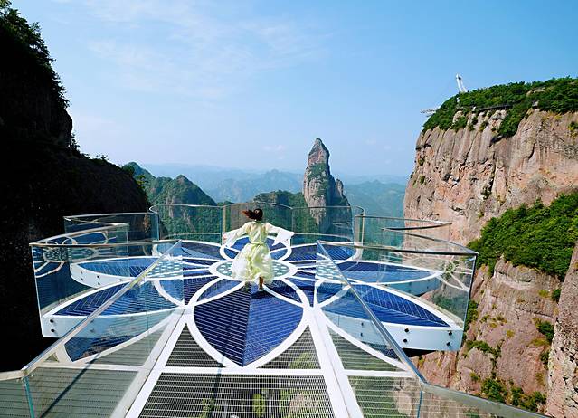 赏景游玩,体验一览众山小的豪情,俯瞰玻璃下的峭壁,玩的就是心跳。