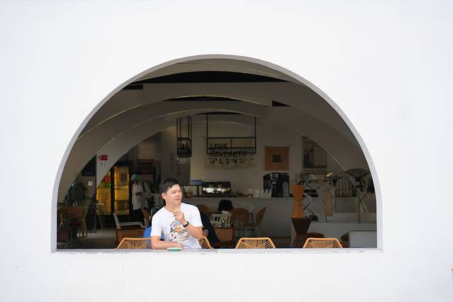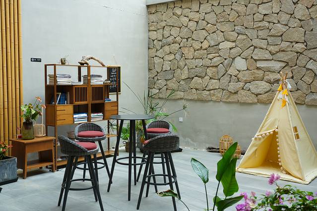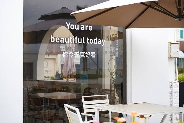 坐在靠拱形椅子上面,从外面往里拍很容易出片,如刚好路过这里可以悠闲坐一坐,顺道拍拍照,还是不错的,属于内外景都能出片。室外也有好多个座位,阳光明媚的时候,坐在外面喝上一杯咖啡享用着海边的惬意时光。店里都是现点现做的咖啡还有一些美食简餐,旁边有停车场,自驾到这里的也方便停车。离码头比较近,如有打算去对面横山岛玩一玩也是个不错的选择哦。