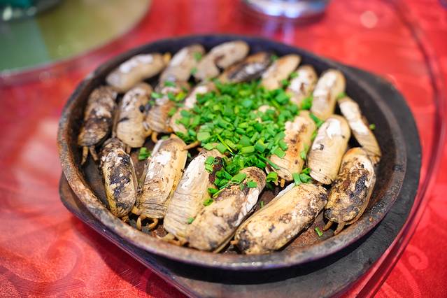 “蛏子之乡” 宁海 长街的蛏子远近闻名。有多种做法盐水煮蛏子,或葱油蛏子,铁板烤蛏子或盐焗蛏子的做法为主。铁板烤蛏子,真的是香味十足,烤的蛏子肉韧劲十足,鲜味十足太好吃了。