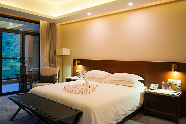 房客房的冷热水均为温泉水,在露天阳台有一个很大的浴缸,可以在房间里泡温泉澡。房间布置温馨、简洁大气,窗外秀峰对峙,每间客房温泉水直接入户,足不出户就能静享天然温泉带给身心的温和疗愈。