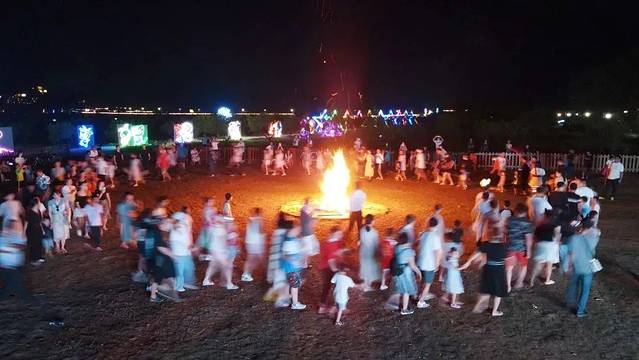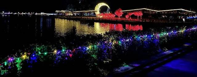 到达第二站的时候已经到了晚上了,峰林晓镇门口的网红夜市已经开起来了!烧烤和糖水的香气弥漫在空气之中,路人都玩得很开心,还有民谣歌手在舞台驻场,配合周围的灯带装饰,兴致达到了极点,这里绝对是逛吃溜娃好去处啊!趣味度可以给五星!