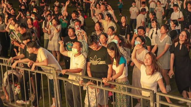 电音节现场气氛热烈,来自各地的游客聚集在舞台前嗨唱不断,其中年轻游客居多,他们兴致昂扬,朝气蓬勃,成为本次电音节中一道道靓丽的风景线。