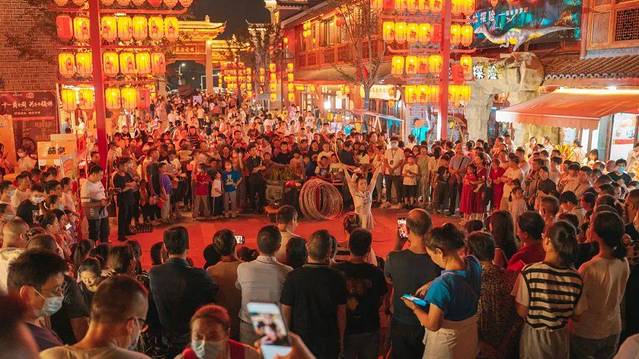此次十一假期,关圣古镇以电音节为主线,集美食盛宴、民俗表演、游船表演、烟花秀于一体,以古镇为舞台,以荆楚建筑为布景,精彩活动不间断,用丰富多彩的形式持续演绎古镇精彩,到处是一片欢快热闹的场面。