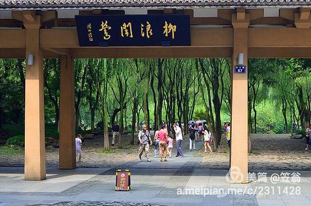 其中经过柳浪闻莺景区,人多、柳长、鸟鸣,也就是柳浪闻莺公园,在园中部主景区辟闻莺馆,又在距闻莺馆不远处置巨型网笼“百鸟天堂”,营造烟花三月、柳丝飘舞、莺声清丽的氛围。闻莺馆东面,以草坪和密林带为主形成友谊园景区,引种了一批樱花,草坪北侧铺石砌台,矗立着“日中不再战纪念碑”。