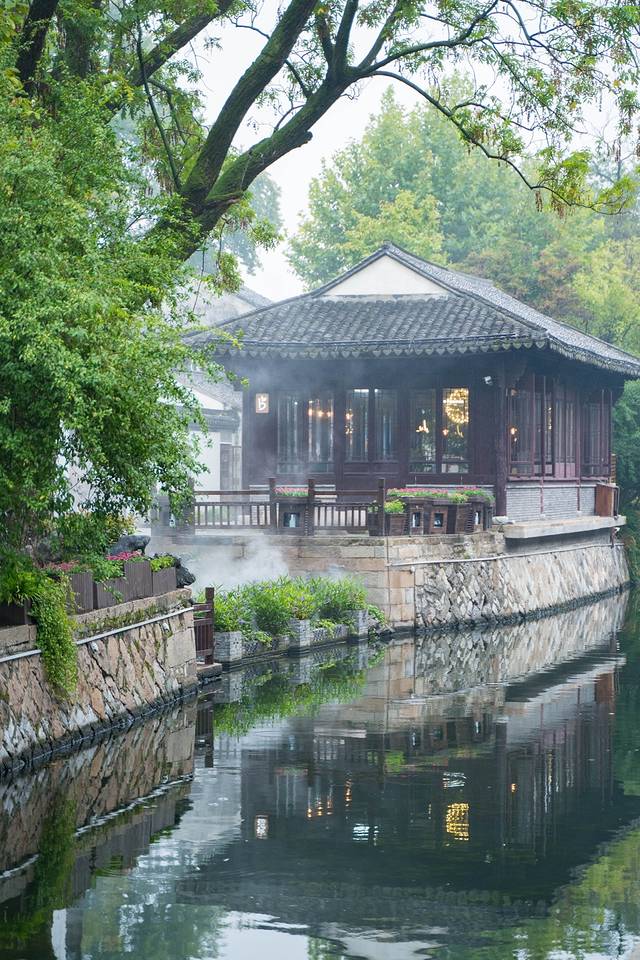 当细雨伴着微风落入水中渐起阵阵涟漪,水面的烟雾阵阵,这便是江南的烟雨,这也是最美的江南。