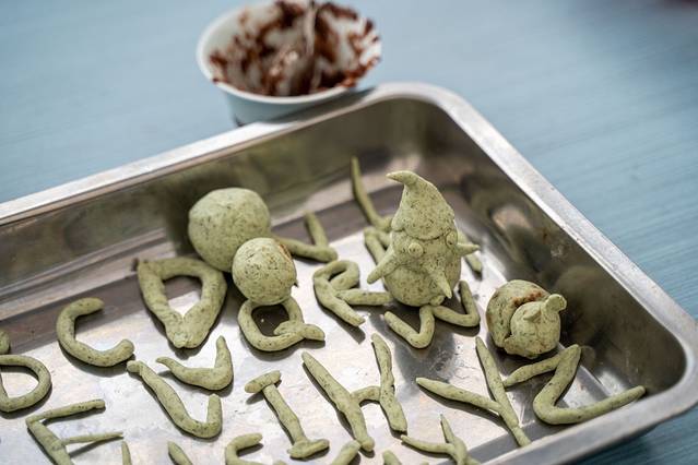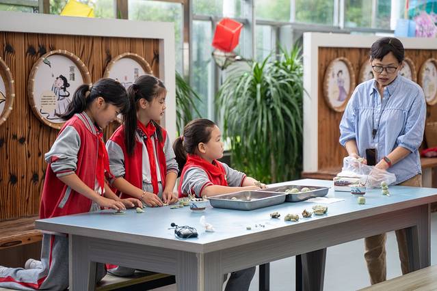 在农耕文化园,不仅能体验到制作豆浆,还可以体验制作传统的糕点,在老师的教导下,小朋友们用面团,搓揉捏擀,一道道步骤井然有序,然后再把准备好的豆沙馅包裹在其中。天马行空的小朋友们,还捏了一个可爱的雪人的模样。
