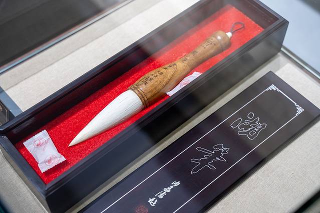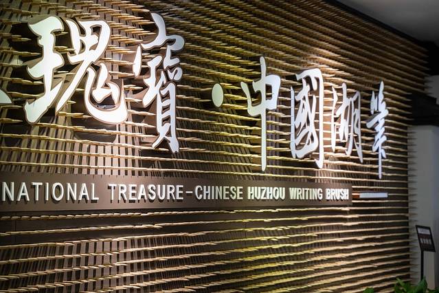 步入中国湖笔文化馆,首先映入眼帘的便是悬挂着的巨大毛笔。一直以来,善琏人都非常重视湖笔的传承与发展,通过一代代人的手口相传,将最原始的湖笔制作技艺保留至今。