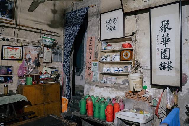 古镇最悠闲的去处要数一元茶馆,来到茶馆,这里到处都能看到岁月的痕迹,点一杯一元的大众茶,喝茶听戏,在这里能消磨大半日的清闲时光。