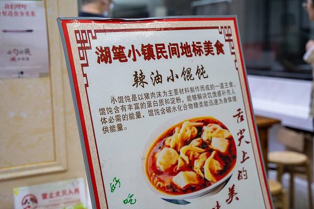 在许多人的印象里,湖州的美食都是清淡的,尤其是对于口味较重的外地游客而言,似乎很难提起食欲,而湖笔小镇的这道辣油小馄饨一定要试试。