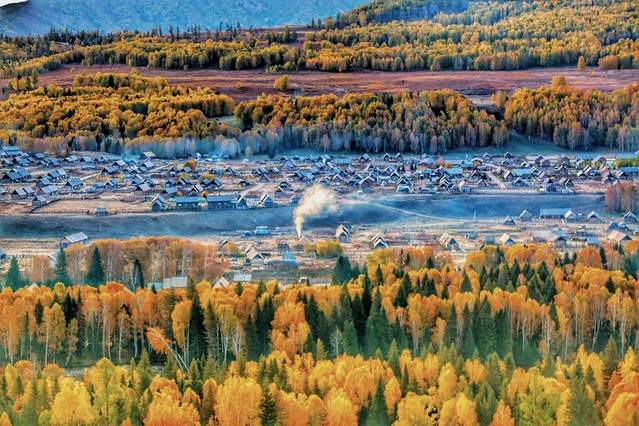 禾木村上空飘荡着温暖的烟火气,香气溢满整个村落,牛羊在草地上悠闲的漫步,秋虽短暂,但秋日的悠闲时光却漫长的好似没有尽头。