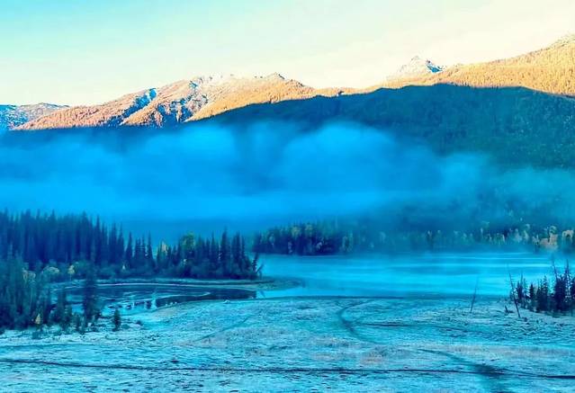 清晨,喀纳斯像是一颗透凉的薄荷糖,深吸一口气,沁人心脾的凉气令人提神醒脑,独属清晨的美在这一刻展现。