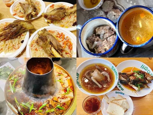羊肉串、大盘鸡、拉条子、抓饭、烤包子、馕、冷水鱼、烤全羊、馕坑肉、风干肉、丸子汤、缸子肉、鸽子汤、新疆炒米粉……每个新疆人随口说出的美食都能凑满一个菜单。(Ps.新疆饭菜普遍分量较大,点餐需“量力而行”~)