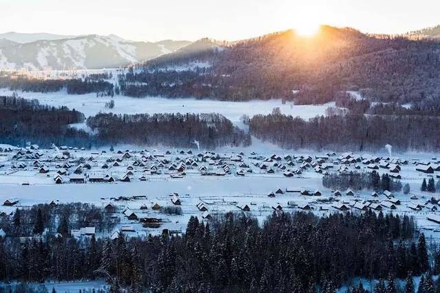 禾木村的夏天是花的海洋,秋天是漫无边际的金色,而冬天则是银装素裹,最迷人的是草原和雪峰,放眼望去,白茫茫一片,此时的心情就两个字“好看”。
