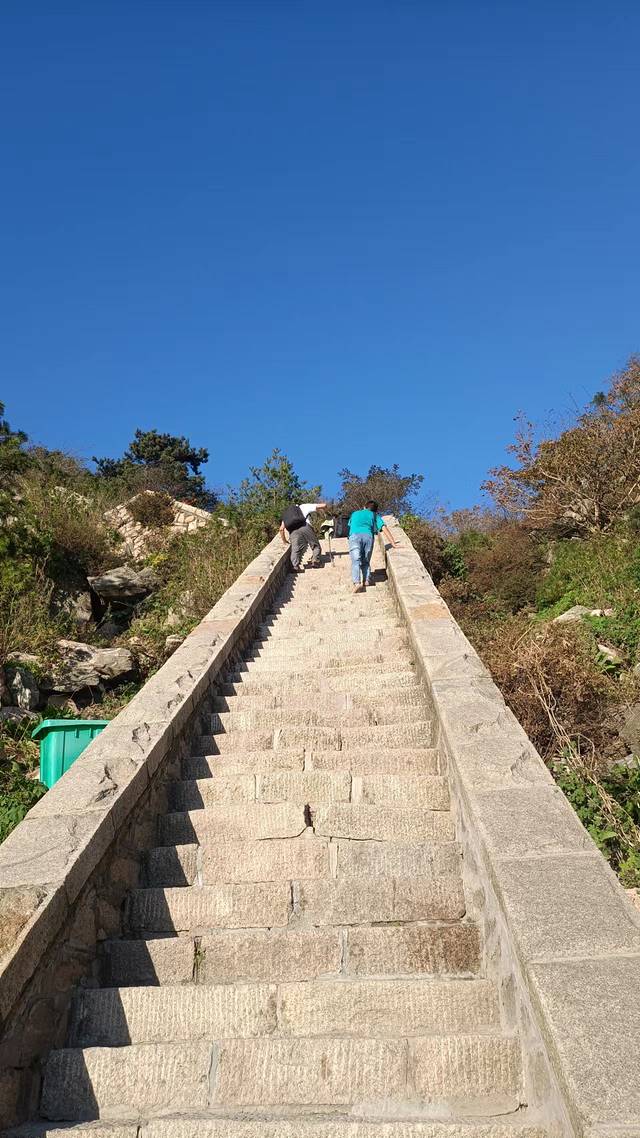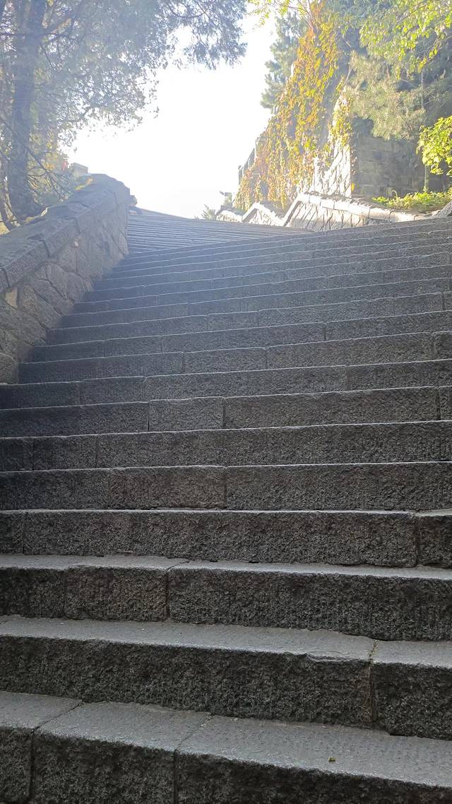 虽没能从“紧十八”直接登山到达南天门,但是改道后的路程依旧是此次登山中最为艰难的一段。虽然可能没有“紧十八”那盘陡峭,但是坡度依旧很大,路程也更加绵长,相比“紧十八”,登山距离直接增加了一倍。