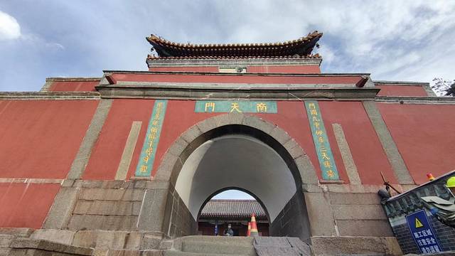 南天门距离南天门宾馆很久,往前走一两百米就到了。此时南天门下方10米左右还有施工的围栏,便匆匆拍照后便准备前往玉皇庙。