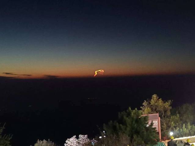 前往宾馆便是下山,也算是轻松。在到达天街牌坊附近时,无意间我抬头看到天边有一抹亮光,好奇心驱使我停下观看。我突然震惊地不知道用什么话形容,也许是我经历太少,对我所见我已无法用言语形容。