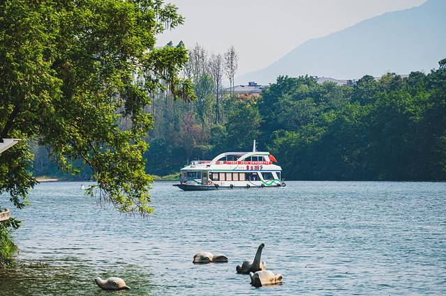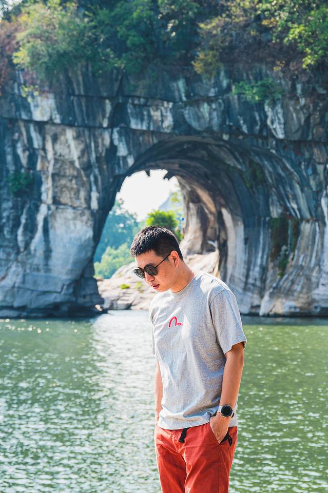 再来看看正面吧!象鼻山的正面我给它起了个名字叫做“进击的小象”,像是一只愤怒的小象跃出水面一般。这种感觉有点像我们另一个很出圈的旅游标志——马踏飞燕,侧面看起来十分优雅,正面反而有点搞笑的成分。