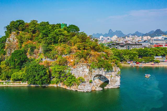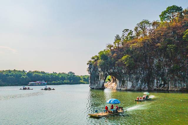 象鼻山因其侧面山形酷似一匹豪饮江水的巨象而得名,早在唐宋就成为著名游览胜地。象鼻山的画面在我们脑海里根深蒂固,这次我还拍下了它的正面,背面等等各种角度和形态,下面就请你来看一看,和你从书本里获得的印象是一样的吗?