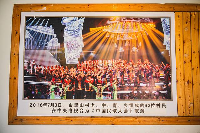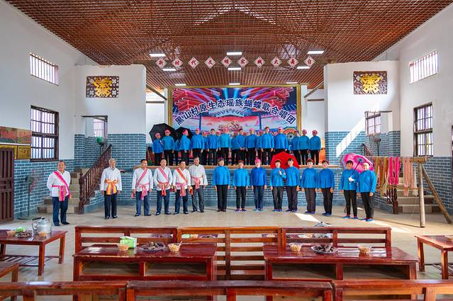最后一座是黑山村,听起来有些酷酷的村名,却有着十分文艺的内涵。黑山村的蝴蝶歌是国家级非物质文化遗产,更是登上过央视《中国民歌大会》。这次来我们也有幸在村里的礼堂听到了蝴蝶歌,蝴蝶歌在瑶族二声部民歌中,用一种叫做“梧州土白话”的方言土语演唱,内容涉及记事、传情、祭祖、述史等瑶族人民生产生活的各个方面和领域。