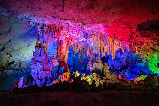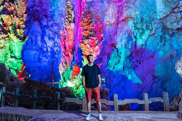 冠岩景区是一个巨型地下河溶洞,全长约12km,是典型的喀斯特地貌,也是一处典型的桂林景区。来到这里,我们首先跟着导游一起去到了溶洞。进入溶洞游客需乘坐30多米的垂直观光电梯进洞。溶洞我不是第一次见,但像这种乘坐电梯,然后来到一个很大的“空间”里还是第一次,真心感慨大自然造物的丰富。