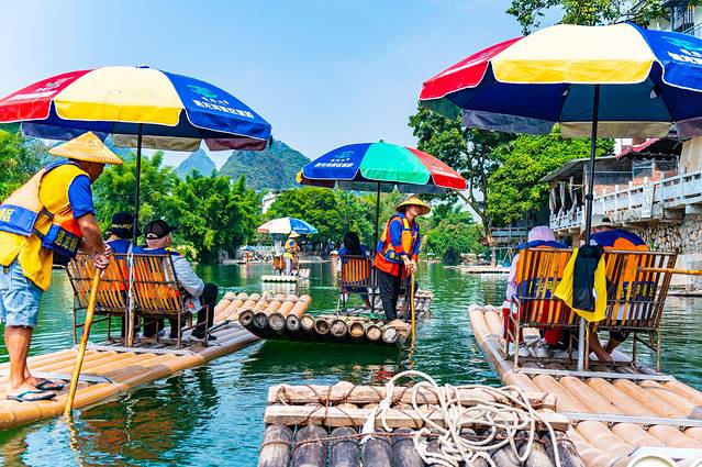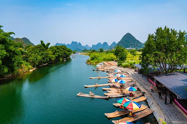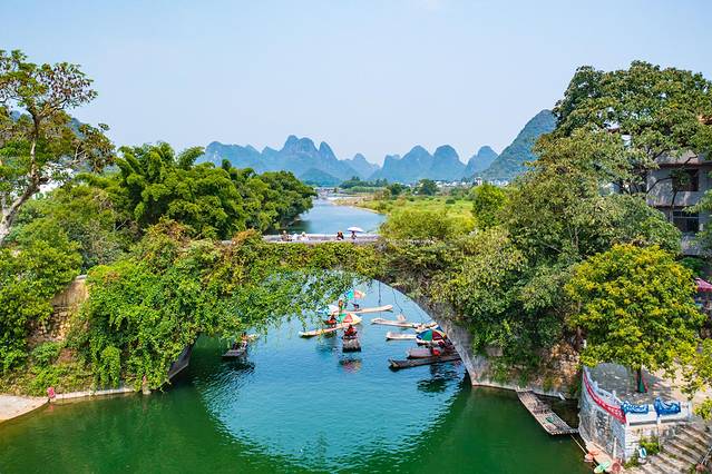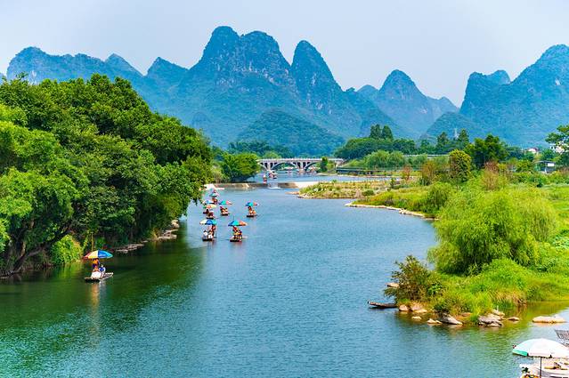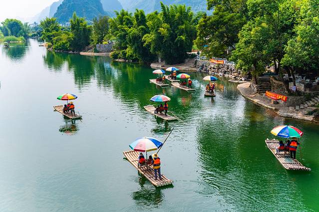 阳朔遇龙河漂流在网上不要太火,是来阳朔必体验的项目。据说最初是由一位境外摄影师包竹筏沿途拍摄,一路上的好风景轰动海外,也让桂林阳朔成为了境外游客最爱的中国旅游地,竹筏漂流也成了游遇龙河的热门项目。这一段风光也有了一个好听的名字叫做“十里画廊”。