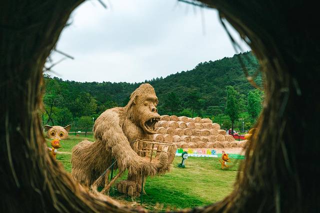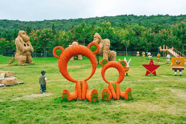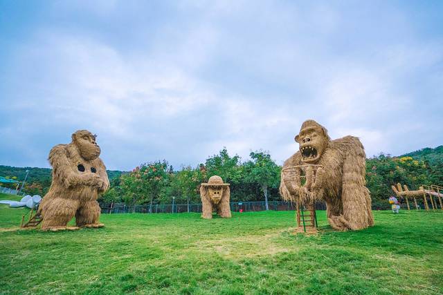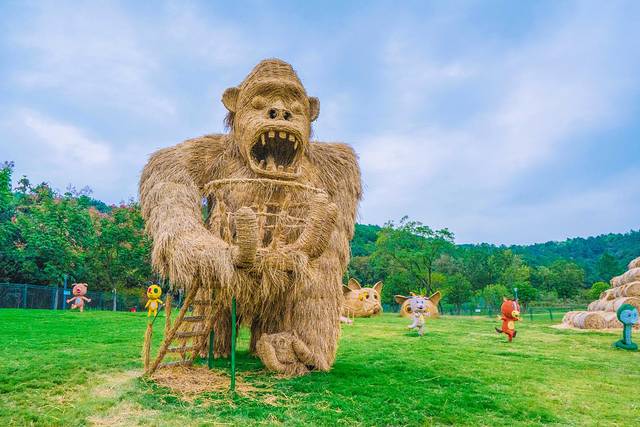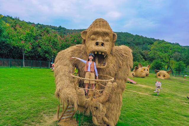 这里是为整个秋天准备的特别大礼包,用稻草做成的各种形状的小动物们,网红大白兔,霸气大猩猩等等,别说是孩子了,就连我这个大人都被牢牢的吸引住了。