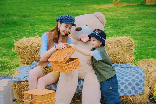 玩累了还能在沙发上躺一会儿,稻草搭成的大沙发,超级可爱的大熊仔,还有露营车、户外餐垫,拍照的道具都为你准备好了,户外感十足,野营风满满,随手一拍,都能晒爆朋友圈。