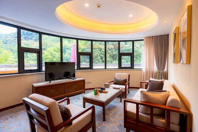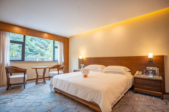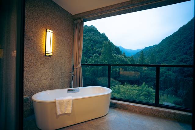 客房是相当的大,超大的窗户,拉开窗帘就可以看到美景,打开水龙头,就能看到清澈的温泉水,呆在房间里就能泡温泉!