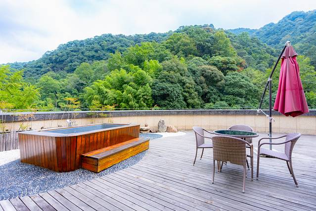 它是藏在森林仙境中的私汤温泉酒店,49.5度的珍稀天然温泉水,在客房里都可以享受到,不管是房间内的浴缸还是室外的私有泡池,都可以体验到泡温泉的快乐!