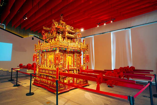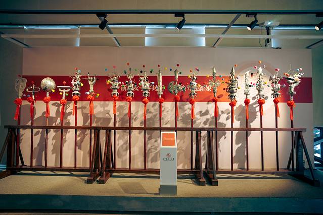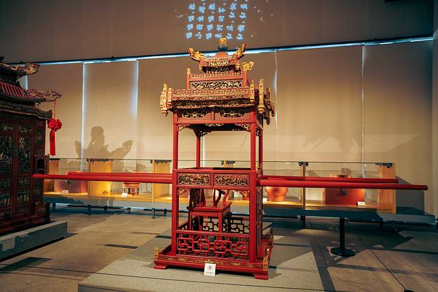 比如1号厅,展出的就是那台大红轿子“万工轿”,做工精巧,雕花细致,金箔贴花,犹如一座宫殿,金碧辉煌,光看这轿子,就可以想象出当年婚嫁里的热闹场面了。