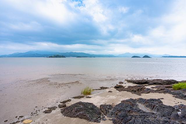 沿着庵旁边的沿海林荫道,可以看到退潮时的滩涂,下去赶海,抓些食材也是不错的玩法。