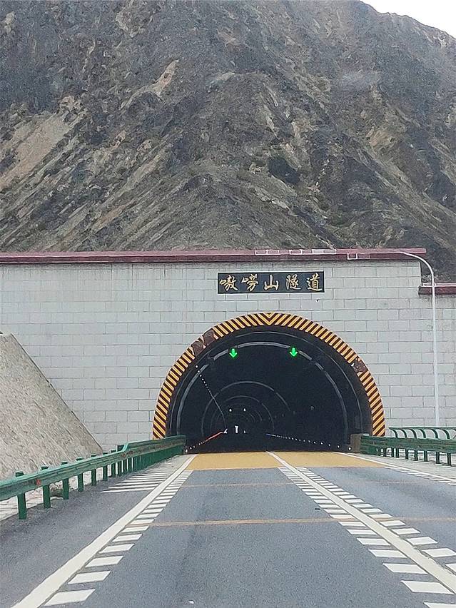 你们没看错,这条路是单行线,反向车道离得还挺远。1个小时左右进入嗷唠山隧道。