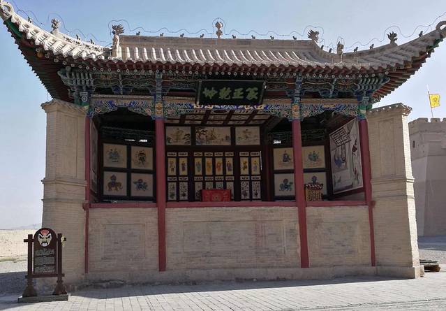 参观路线由东进入正门,即由关内向关外。步行得有一截距离,路过九眼泉湖,面朝东闸门,右手边的“左公杨”长得分外雄伟,据说这棵树就是由左宗棠亲手栽植的,他率湘军西征新疆,沿途种适合本地生长的树木,一来可以治理沿途的沙漠,保护道路不至于被漫漫黄沙所掩盖。二来可以作为道路的路标,为后来的部队和行人指引方向。几年后,在返京述职时,看见自己西去时栽植的杨柳树绿意盎然,感觉很惊奇,就在嘉峪关关城即兴作诗:“大将筹边人未还,湖湘子弟满天山,新栽杨柳三千里,引得春风渡玉关”。