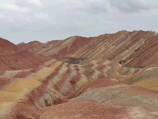 张掖位于河西走廊中部,东邻武威地区和金昌市,西连酒泉地区,公元前121年由汉武帝派霍去病西征,战败匈奴后始设张掖郡,取“断匈奴之臂,张中国之掖(腋)”之意而得名。张掖丹霞地质公园地处祁连山北麓,位于临泽县城以南30公里,是中国丹霞地貌发育最大最好、地貌造型最丰富的省级地质公园、省级风景名胜区,东距张掖市区30公里。 两个多小时的路程赶到了张掖的七彩丹霞景区西门。