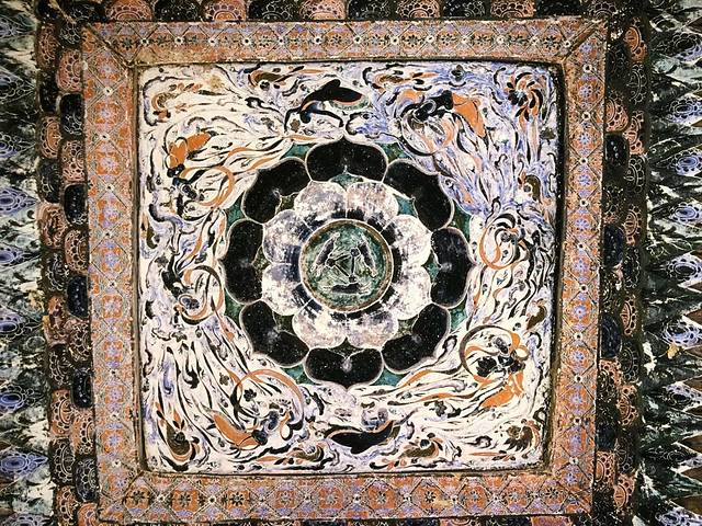 停车场的主要功能就是售票和观看影像资料,之所以把景区扩大到这边主要就是为了这个莫高窟数字展示中心,两场电影各20分钟,一场《千年莫高》的观看,让游客在参观洞窟之前对丝绸之路的形成、佛教东传、敦煌莫高窟的营建等内容有较为初步的了解,《梦幻佛宫》球幕电影是莫高窟数字展示中心最大的看点,重点讲述了部分洞窟的精华壁画,其中对三兔莲花藻井图的映像颇为深刻。