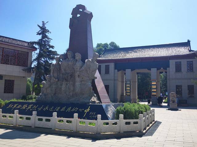 除了西路军纪念馆,街道两旁的雕塑也提醒着我们这座城市是一座充满了红色记忆的城市。烈士陵园建于1954年,位于市区凤凰山下,陵园由烈士群雕塑像、纪念碑、烈士墓、中国工农红军西路军纪念馆等组成,陵园门前有中国工农红军西路军烈士群雕塑像,基座上刻着李先念同志的题词。