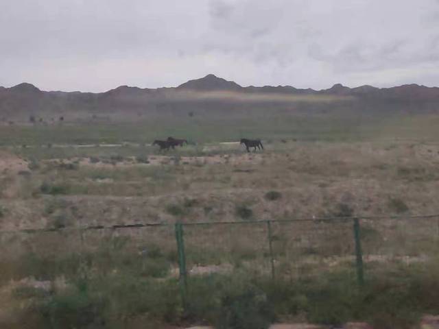 很快旅途的第一个意外插曲出现了,隔壁的小孩突然发起了高烧,列车员紧张了起来,每过一会就来检测下体温,并强调,如果持续高烧到兰州站不仅要求他们下车,我们整节车厢的旅客都要下车检测核酸,疫情并没有远离我们哦,全体团员心里估计都有点小忐忑。还好,孩子的温度过了半天退了,我们又可以继续旅程。进入西安,黄土高坡就已经显现出了西北干旱缺水的特征。过了兰州就算是进入河西走廊了,漫漫戈壁更是苍凉尽显,看疲劳了骆驼刺,一下发现了野驴和野马,车厢里都是赶紧拍照的人们。