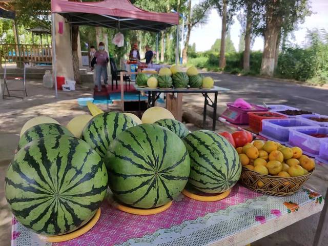 中午1点多,超速A组,已经在阳关镇的瓜摊等候我们了,边上就是中午吃饭的龙腾山庄,这山庄可真够大的,餐饮住宿还有卡拉ok,听老板说占地得有300多亩,真是沙漠中的一片绿洲。