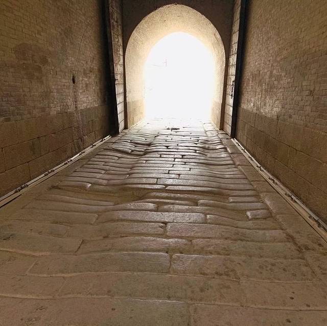 穿过门洞的条石,开采黑山,冬季靠泼水结冰的路面搬运至此。