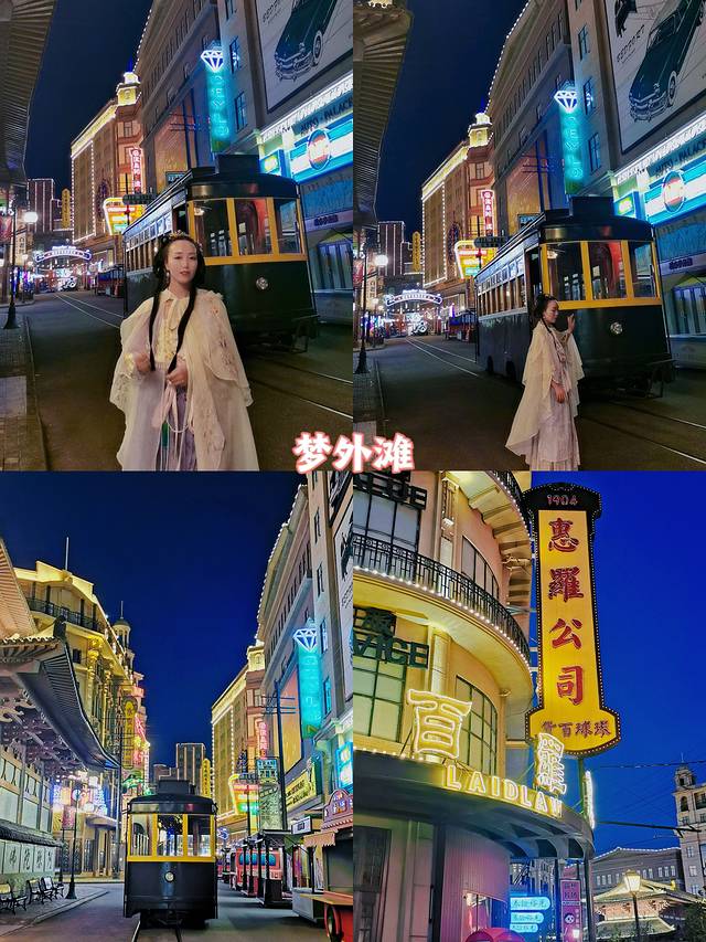 第二天晚上,梦外滩影视主题公园,坐上有轨电车,穿越十里洋场,梦回百年外滩,和许文强一起走进上海滩,感受枪林弹雨,在花果山水帘洞看5D动感剧齐天大圣大闹天宫,萌想片场亲子影视体验乐园,小朋友会很喜欢,百老舞汇的演出是重头戏。
