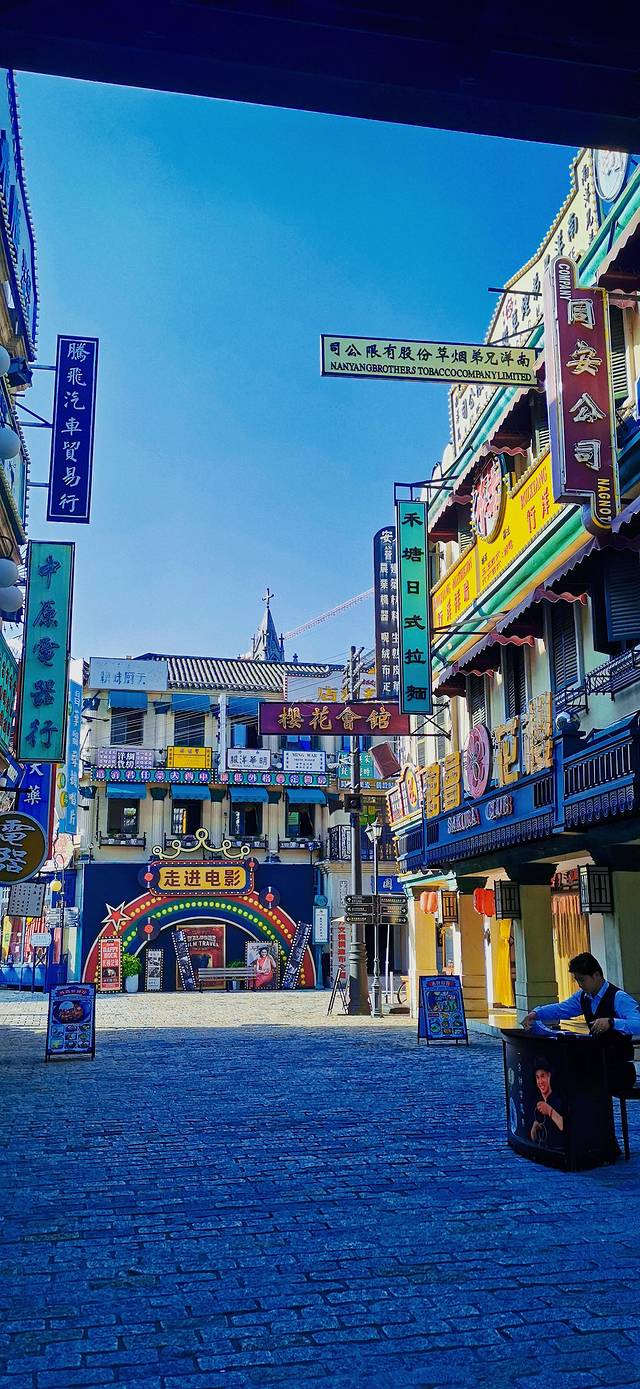 第二天下午,香港街广州街,走在路上,仿佛进入了一场民国的梦境,灯红酒绿,魔术师、钟楼、当铺、茶馆、水务局,老九门的新月饭店,还有水上摩托表演。