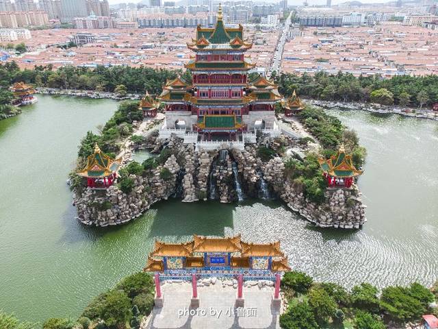 整个三仙山景区虽然全部是人工修建,但是非常恢弘大气,处处可谓精致至极。我们是逛了 蓬莱 阁以后才到的这里,说实话,这里的风景并不输给 蓬莱 阁,只是 蓬莱 阁更有历史底蕴一些。